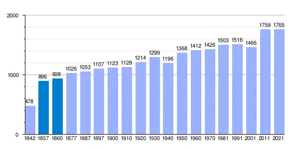 | Gráfica de evolución demográfica de Soses[3] entre 1842 y 2021 |