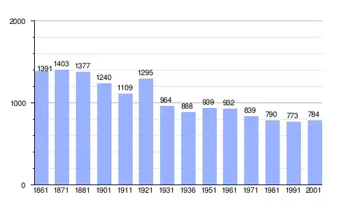 Gráfica de evolución demográfica de Sostegno entre 1861 y 2001