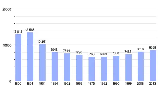 Los datos entre 1800 y 2013 son el resultado de sumar los parciales de las veinte comunas que forman la nueva comuna de Souleuvre-en-Bocage, cuyos datos se han cogido de 1800 a 1999, para las comunas de Beaulieu,[3] Bures-les-Monts,[4] Campeaux,[5] Carville,[6] Étouvy,[7] La Ferrière-Harang,[8] La Graverie,[9] Le Bény-Bocage,[10] Le Reculey,[11] Le Tourneur,[12] Malloué,[13] Mont-Bertrand,[14] Montamy,[15] Montchauvet,[16] Saint-Denis-Maisoncelles,[17] Sainte-Marie-Laumont,[18] Saint-Martin-des-Besaces,[19] Saint-Martin-des-Besaces,[19] Saint-Martin-Don,[20] Saint-Ouen-des-Besaces[21] y Saint-Pierre-Tarentaine[22] de la página francesa EHESS/Cassini. Los demás datos se han cogido de la página del INSEE.[23]