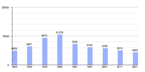 | Gráfica de evolución demográfica de Sousel entre 1864 y 2021 |
