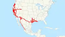 La línea principal recorría 1,762 kilómetros desde la ciudad sonorense de Nogales, justo al otro lado de la frontera con Arizona, hasta la ciudad de Guadalajara, deteniéndose en varias ciudades y pueblos portuarios del noroeste a lo largo del camino.[3] Propiedad de la Southern Pacific Company, que operaba un sistema ferroviario altamente rentable al norte de la frontera, el SP de Mex transportó millones de pasajeros, así como millones de toneladas de carga a lo largo de los años, tanto dentro de México como a través de su frontera norte. Daniel Lewis informa que rara vez obtuvo ganancias y sostiene que los ejecutivos de SP, instados por los medios de comunicación de la época, operaron con un imperialismo reflexivo que mantuvo a la empresa comprometida con el ferrocarril mucho después de que dejó de tener sentido comercial. Fue vendido al gobierno mexicano en 1951, convirtiéndose en el Ferrocarril del Pacífico.[4][5]