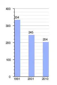 | Gráfica de evolución demográfica de Soutomayor (Santa Fe) entre 1991 y 2010 |