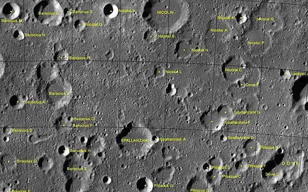 Por convención estos elementos son identificados en los mapas lunares poniendo la letra en el lado del punto medio del cráter que está más cercano a Spallanzani.