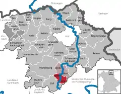 Se encuentra ubicado al norte del estado, en la región de Alta Franconia, a poca distancia de la frontera con los estado de Turingia y Sajonia.