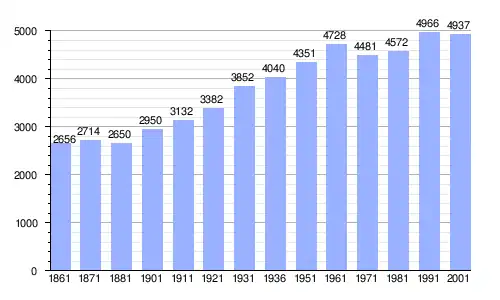 Gráfica de evolución demográfica de Specchia entre 1861 y 2001