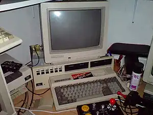Computadora Spectravideo SV-328 con unidad de cinta en el Museo de computadoras y videoconsolas de Helsinki.