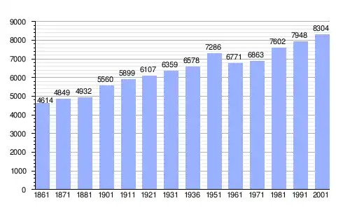 | Gráfica de evolución demográfica de Spello entre 1861 y 2001 |