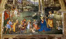 Spello tiene una docena de pequeñas iglesias, la mayor parte de ellas de época medieval, de las cuales la más destacada es Santa María Maggiore (conocida desde 1159), probablemente construida sobre un antiguo templo dedicado a Juno y Vesta. La fachada tiene un pórtico románico y un campanario del siglo XIII, mientras que las pilastras junto al ábside tienen frescos de Perugino (1512). El rasgo más destacado, sin embargo, es la Cappella Bella con frescos obra de Pinturicchio. El artista umbrio fue llamado para pintarla en 1500 por Troilo Baglioni, después de que acabara los Apartamentos Borgia en el Palacio Apostólico de la Ciudad del Vaticano. El ciclo incluye la Anunciación, la Natividad y la Disputa con los doctores, más cuatro Sibilas en la bóveda. El Palazzo dei Canonici, anejo a la iglesia, alberga la galería de arte municipal.