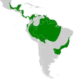 En Gutemala se encontró un nido con un huevo el 29 de abril de 1992 en el parque nacional Tikal, y el polluelo nació el 5 de mayo y emplumó el 15 de julio. Otro nido con un pichón de unas seis semanas fue encontrado el 3 de julio de 1992. El nido en el parque nacional Tikal fue ubicado a 27 m sobre el suelo en un "Ramón Blanco" (Brosimum alicastrum) árbol de 30 m de altura y estaba en una maraña de enredaderas sostenido por dos ramas secas a nueve m del tronco principal. Otro nido tenía 28 m de altura en un árbol "Pucté" (Bucida buceras), y también estaba en una maraña de bejucos sostenido por dos ramas a unos 3 m del tronco principal.[6] En Panamá, Smith (1970) encontró dos juveniles vellosos en un nido en la Zona del Canal en febrero de 1965 y un juvenil emplumado cerca del mismo nido en agosto de 1968.[9] Canuto (2008) observó a una pareja en exhibición de cortejo en julio en el parque nacional Soberanía. En el Salvador, A West (1988) se le mostró un supuesto nido de esta especie ubicado a 15 m de altura en un árbol de níspera (Manilkara zapota) de 20 m en el Bosque El Imposible. El árbol del nido estaba ubicado en la ladera de una colina, con vista a un valle.[10]