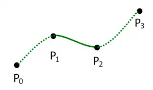 En computación gráfica, el spline centrípeto de Catmull-Rom es una variante del interpolador cúbico de Hermite, formulada originalmente por Edwin Catmull y Raphael Rom,[1] que puede calcularse utilizando un algoritmo recursivo propuesto por Barry y Goldman.[2] Es un tipo de spline de interpolación definido por cuatro puntos de control (por los que pasa), pero con la curva dibujada solo de a .