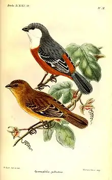 ![]() Ejemplar macho de semillero palustre (Sporophila palustris) en los esteros del Iberá, Corrientes, Argentina. | ||