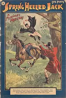 Sin embargo, fue en la ficción donde la leyenda de Spring Heeled Jack ejerció su mayor influencia, debido a su presunta naturaleza extraordinaria. Casi desde el momento en que los primeros incidentes se hicieron públicos, se convirtió en un personaje de ficción de éxito, pasando a ser el protagonista de muchos penny dreadfuls entre 1840 y 1904. También se representaron varias obras teatrales donde adoptaba el papel protagonista.