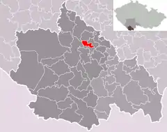 Se encuentra ubicada en al sur de la región, en la zona de la selva de Bohemia, al sur de la ciudad de Praga, de la orilla del río Moldava —el más largo del país, afluente del río Elba— y al norte de la frontera con Austria.[1]