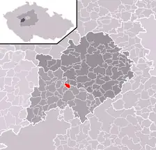 Se encuentra ubicada al oeste de la región y de Praga, en la cuenca hidrográfica del río Berounka —un afluente izquierdo del río Moldava—, y cerca de la frontera con la región de Pilsen.[1]