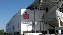 El edificio moderno tiene cuatro pisos: el sótano contiene las áreas de jugador, prensa y almacenamiento del Catering y la zona mixta. La oficina del Rot-Weiss Essen, la tienda de abanicos del club, el comedor Kulturfreunde 97A y otras áreas de cocina y baño se encuentran en la planta baja. En el primer piso solo está el área de negocios Assindia. Las cajas y el área para el presentador del estadio, el personal de seguridad y la policía están en el último y segundo piso.