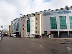 En su nivel inferior se encuentra el "Salón del Centenario", en el cual se llevan cabo ceremonias del club,[37] además de que en su exterior se encuentran los Hoteles Millennium & Copthorne, siendo este último la cara principal de la gradería.[38][39] Las cenizas del fallecido exjugador Peter Osgood fueron colocadas debajo del punto penal que se encuentra situado frente a la gradería en 2006.