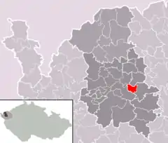 Se encuentra ubicada al norte de la región, cerca de la orilla del río Ohře —un afluente izquierdo del río Elba—, y a poca distancia al sur de la parte occidental de los montes Metálicos y de la frontera con Alemania (estado de Sajonia).[1]