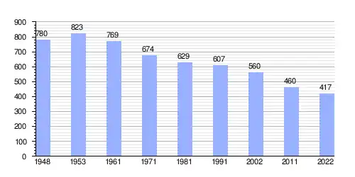 Hasta 2022 la población era de 417 habitantes,[3] con una densidad de población de 75,82 habitantes por kilómetro cuadrado.[3]