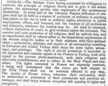 Estos firmanes recibieron reconocimiento internacional en el artículo 9 del Tratado de París (1856).[6] El término "statu quo" se utilizó por primera vez en relación con los Santos Lugares en el Tratado de Berlín (1878).[6]