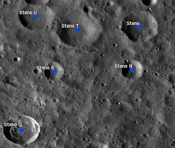 Por convención estos elementos son identificados en los mapas lunares poniendo la letra en el lado del punto medio del cráter que está más cercano a Steno.