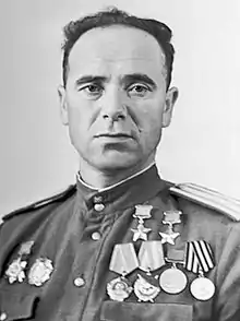 - Héroe de la Unión Soviética, dos veces (27 de febrero de 1945[5] y 31 de mayo de 1945[6])