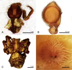 La especie aparece registrada y publicada en Mello-Leitao 1929d: 57, f. 137-139.[2]