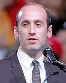 Stephen Miller (Santa Mónica, California; 23 de agosto de 1985) es un activista político de derecha[1][2] estadounidense. Se desempeñaba como consejero superior del presidente de los Estados Unidos para el presidente Donald Trump.[3] Antes de su nombramiento durante a administración Trump, fue el director de comunicaciones del entonces senador de Alabama, el fiscal general Jeff Sessions. También fue secretario de prensa de la congresista Michele Bachmann y del congresista John Shadegg.