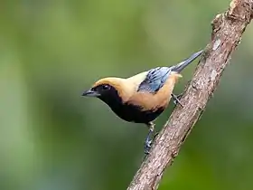 ![]() Ejemplar hembra de tangara isabel (Stilpnia cayana chloroptera) en Extrema, Minas Gerais, Brasil. | ||