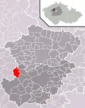 Se encuentra ubicada al noroeste de la región y de Praga, a poca distancia al norte del río Berounka —un afluente izquierdo del río Moldava—, y cerca de la frontera con la región de Ústí nad Labem.[1]