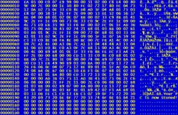 ![]() Volcado hexadecimal que muestra el texto «Your PC is now Stoned!» (¡Tu PC ahora está drogada!) en el último sector de 512 bytes del registro de arranque principal | ||