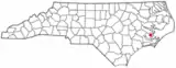 Ubicación en el condado de Pamlico y en el estado de Carolina del Norte