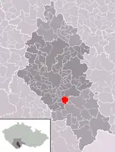 Se encuentra ubicada en el centro-sur de la región, en la zona de la selva de Bohemia, a poca distancia al sur de la ciudad de Praga, de la orilla del río Moldava —el más largo del país, afluente del río Elba— y al norte de la frontera con Austria.[1]
