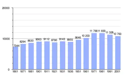 | Gráfica de evolución demográfica de Stradella entre 1861 y 2001 |