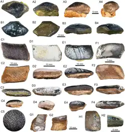 4. Léa Leuzinger; Gilles Cuny; Evgeny Popov; Jean-Paul Billon-Bruyat (2017). «A new chondrichthyan fauna from the Late Jurassic of the Swiss Jura (Kimmeridgian) dominated by hybodonts, chimaeroids and guitarfishes». Papers in Palaeontology 3 (4): 471-511. doi:10.1002/spp2.1085.