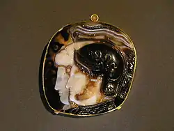 - Un vaso-camafeo precioso en ónice que Isabel compró en 1506 en Venecia en una subasta de la herencia de Michele Vianello (conservado en Brunswick) y que se expuso en la grotta.