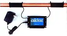 Desde hace unos años se comercializan unos aparatos electrónicos que aseguran tratar el agua para evitar las formaciones de calcio en las tuberías. Según los distribuidores, el efecto se genera creando un fuerte campo magnético que atraviesa la tubería por donde circula el agua que se quiere tratar. Los impulsos de este campo magnético afectan los cristales de calcio modificando su estructura molecular para que se mantengan en suspensión y no se fijen a las paredes de las tuberías.