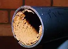 El agua con alto contenido de sales de calcio o magnesio (agua dura) tiende a formar incrustaciones minerales en las paredes de las tuberías. En algunos casos bloquean casi la totalidad de la sección del tubo.