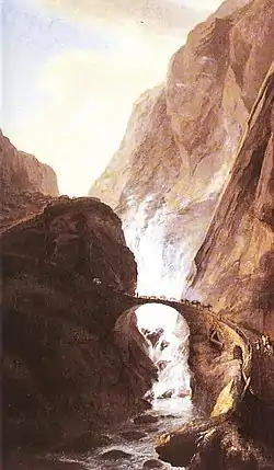 También cabría citar como paisajistas enmarcados en la representación de lo sublime a John Martin, Thomas Cole y John Robert Cozens en el Reino Unido; Ernst Ferdinand Oehme y Carl Blechen en Alemania; Caspar Wolf en Suiza; Joseph Anton Koch en Austria; Johan Christian Dahl en Noruega; Hubert Robert y Claude-Joseph Vernet en Francia; y Jenaro Pérez Villaamil en España.[12]
