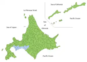 Subprefectura de Iburi (en celeste) en Hokkaidō.
