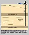 La causa de los cambios superficiales a largo plazo asociados con la sobreexplotación de acuíferos es bastante conocida.[4] Como se muestra en la figura del Servicio Geológico de Estados Unidos, los acuíferos suelen encontrarse en capas (estratos del terreno) compresibles de limo o arcilla.