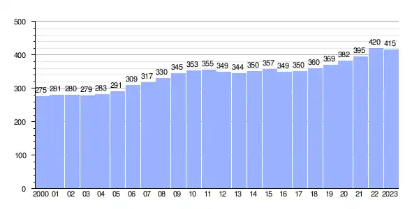 | Gráfica de evolución demográfica de Sueiro entre 2000 y 2023 |