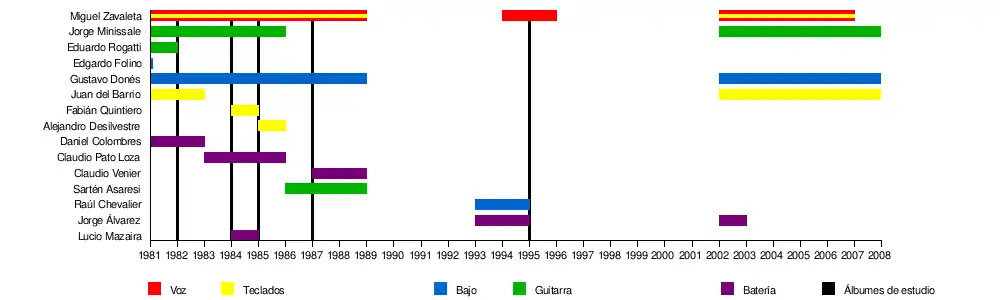 - Daniel Colombres ingresó a la banda en 1981 y grabó el álbum debut de la banda y se retira en 1983.[56]