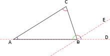 En otras palabras, es posible sustituir el quinto postulado de Euclides por otro axioma: hay un triángulo cuya suma de ángulos es igual a dos ángulos rectos . Entonces el axioma de las paralelas se convierte en un teorema demostrable. Esta permutación no cambia los demás resultados de la geometría euclidiana.