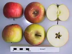 ![]() La variedad de manzana 'Sunset' con secciones cruzadas. | ||