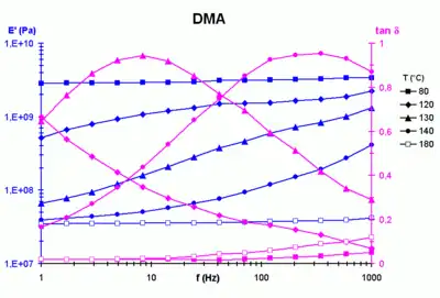 Si un cuerpo viscoelástico está sujeto a una carga dinámica, si la frecuencia de excitación es lo suficientemente baja,[9] el comportamiento viscoso es primordial y todas las cadenas de polímero tienen tiempo para responder a la carga aplicada dentro de un período de tiempo. Por el contrario, a frecuencias más altas, las cadenas no tienen tiempo para responder completamente y la viscosidad artificial resultante da como resultado un aumento en el módulo macroscópico. Además, a frecuencia constante, un aumento de temperatura da como resultado una reducción del módulo debido a un aumento en el volumen libre y el movimiento de la cadena.