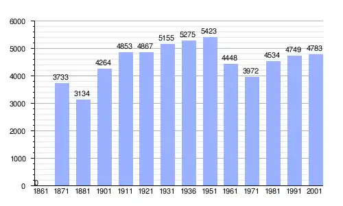 | Gráfica de evolución demográfica de Supino entre 1861 y 2001 |