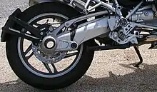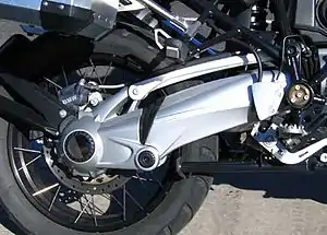 La motocicleta básica de brazo basculante es cuadrilateral, un lado corto conectado al cuadro de la motocicleta por baleros de modo que pueda pivotar.[10] El otro extremo del lado corto está unido al eje de la rueda trasera sobre el que gira. Los lados largos están conectados al cuadro o sub-cuadro trasero de la motocicleta con uno o 2 amortiguadores y resortes para controlar el movimiento.