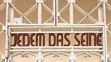 - «„Jedem das Seine“». Buchenwald.de (en alemán). Consultado el 25 de marzo de 2024. «Das Lagertor soll die von der SS geschaffene Grenzlinie zwischen nationalsozialistischen „Herrenmenschen“ und „Minderwertigen“ sichtbar herausheben. [La puerta del campo pretende resaltar visiblemente la línea divisoria creada por las SS entre el “pueblo superior” nacionalsocialista y los “pueblos inferiores”]».