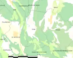 Syam es una localidad y comuna francesa situada en la región de Franco Condado, departamento de Jura, en el distrito de Lons-le-Saunier y cantón de Champagnole.