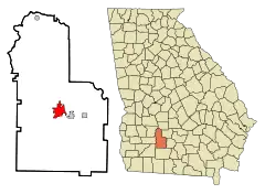 ![]() Ubicación en el condado de Worth en el estado de Georgia ![]() | ||